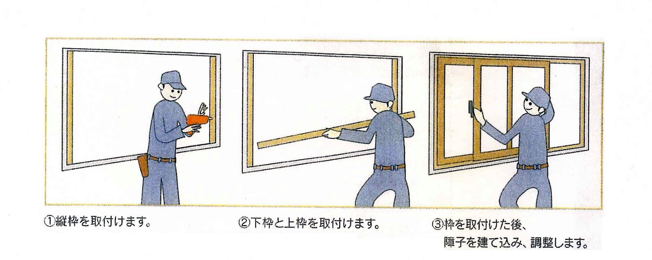 現在のサッシはそのままで、内側に樹脂サッシを追加するだけの方法です。