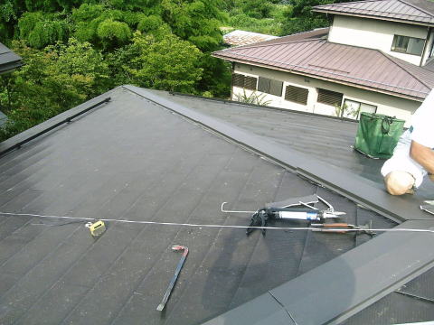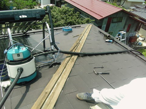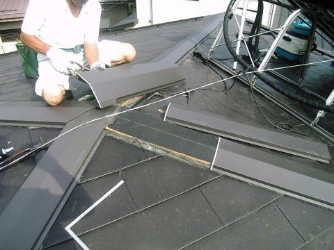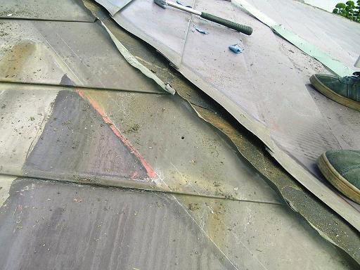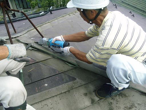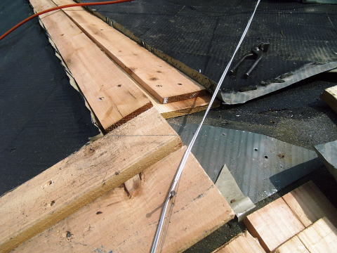 下葺きのルーフィングを傷つけないように注意してカットします。 |