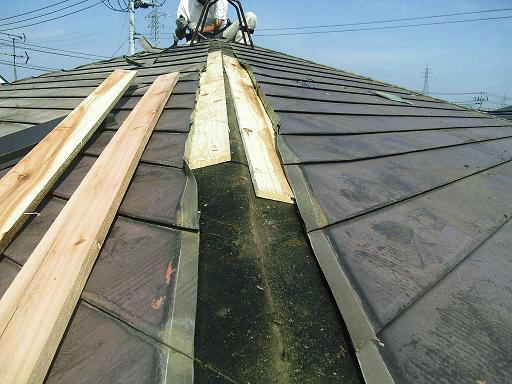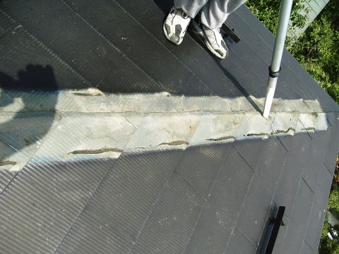屋根に上って確認したところ、屋根に以上はなく、棟を触ってみたところ、簡単に浮き上がってきました。