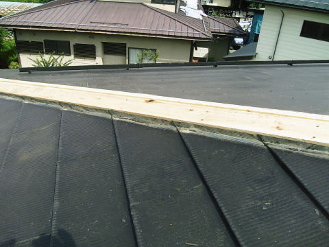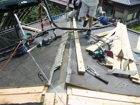 000000000 | 横葺き屋根は、横方向に水が走るために、 水が来ないように屋根の下に下地を入れて、高くします。 |