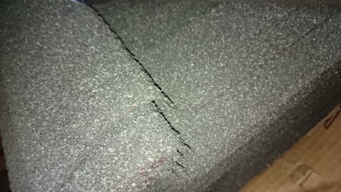 急こう配の屋根。、ドーマー屋根両サイドも屋根材です。 雪が滑り落ちてきて、軒先にごっそり溜まります。 |