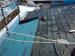 既存の屋根に特殊ゴム系防水シートを貼ります。 |